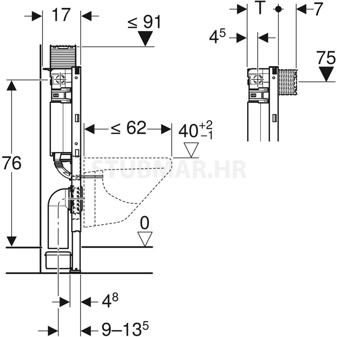 - Za ugradnju u Geberit Duofix sistemske zidove u visini elementa